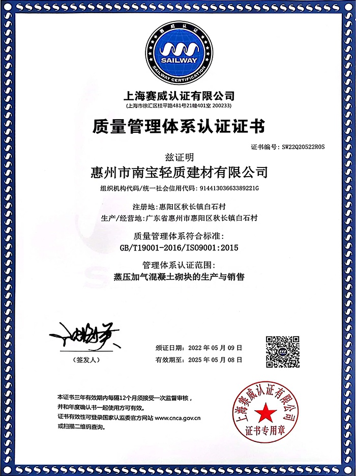 廣東省惠州市南寶輕質(zhì)建材有限公司成立于2007年,公司一直致力于新型環(huán)保的墻體材料的開發(fā)、生產(chǎn)和銷售服務(wù),生產(chǎn)的蒸壓加氣混凝土砌塊遍布惠州、深圳及周邊城市,以高品質(zhì)、高性價比的產(chǎn)品和優(yōu)良的服務(wù)質(zhì)量榮獲良好的行業(yè)口碑,公司于2020年再接再勵,投入3000余萬資金引進(jìn)行業(yè)領(lǐng)先的6米全自動加氣混凝土砌塊生產(chǎn)線,具備年產(chǎn)量40萬方加氣混凝土砌塊的產(chǎn)能,同時使產(chǎn)品品質(zhì)、性能更加優(yōu)越。